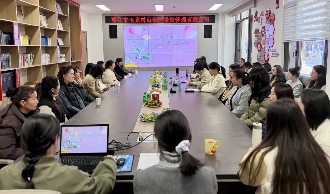 春风送暖,巾帼如歌。在第116个“三八”国际妇女节到来之际,为丰富女职工精神文化生活,凝聚巾帼奋进力量,展现新时代女性昂扬向上的精神风貌,3月6日,玉龙雪山景区投资公司工会女职工委员会以“绽放巾帼风采,共绘雪山芳华”为主题,开展系列庆祝活动,公司机关全体女职工及一线各部门女职工代表共38人欢聚一堂,共度专属美好节日。公司总经理杨丽媛出席活动并致辞。