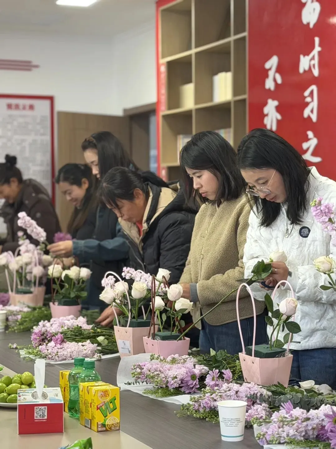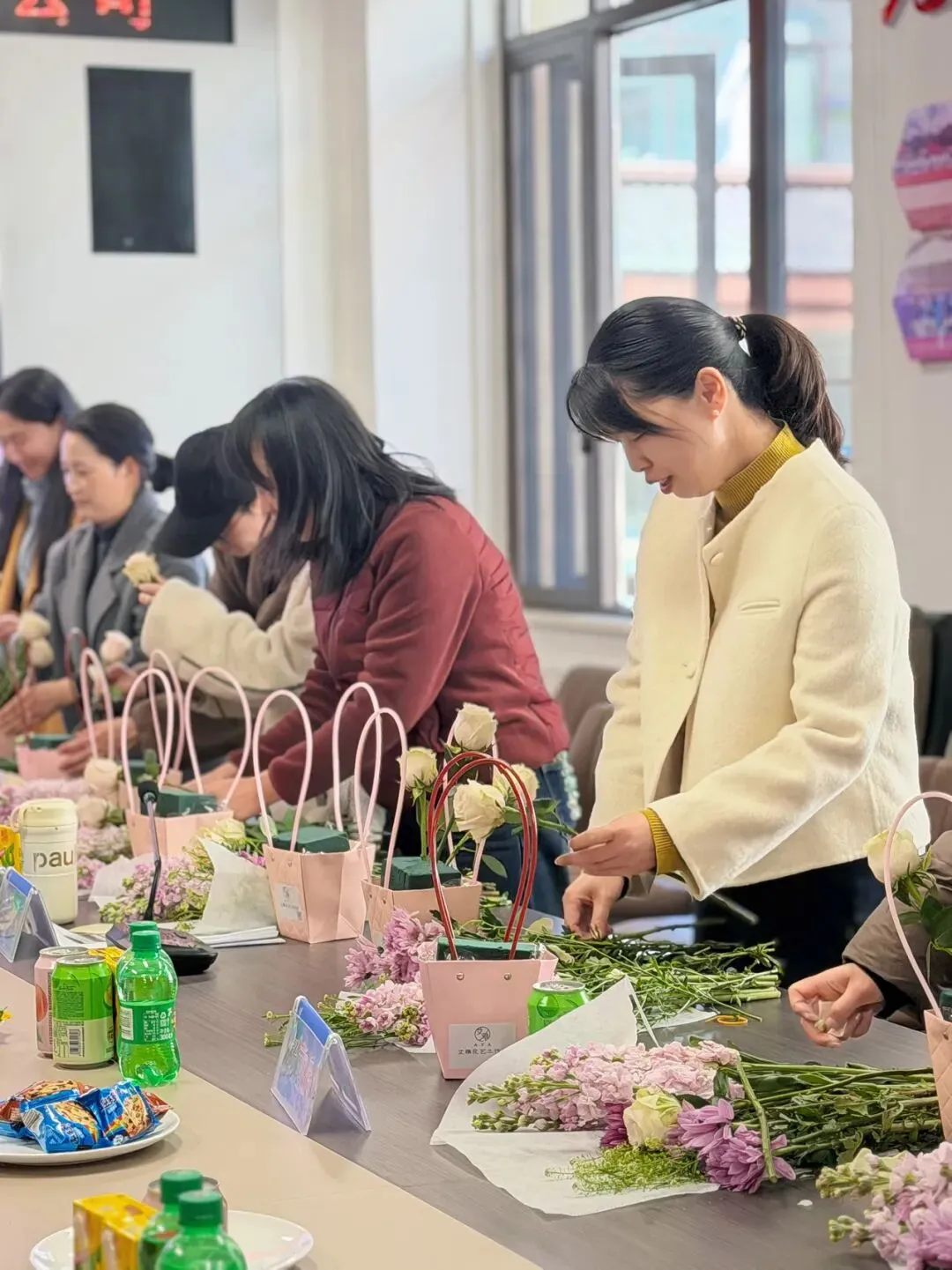创意插花体验环节将活动氛围推向高潮。活动特邀专业花艺老师现场授课,从花卉知识、插花技巧、色彩搭配等方面进行细致讲解与示范指导。女职工们兴致盎然、巧手创作,在修剪、搭配、造型的过程中感受花艺之美,将对生活的热爱融入每一枝花、每一片叶。经过精心创作,一盆盆错落有致、生机盎然的插花作品新鲜出炉,大家相互欣赏交流、拍照留念,现场洋溢着温馨愉悦的氛围,花艺作品也成为大家收获满满的节日纪念。