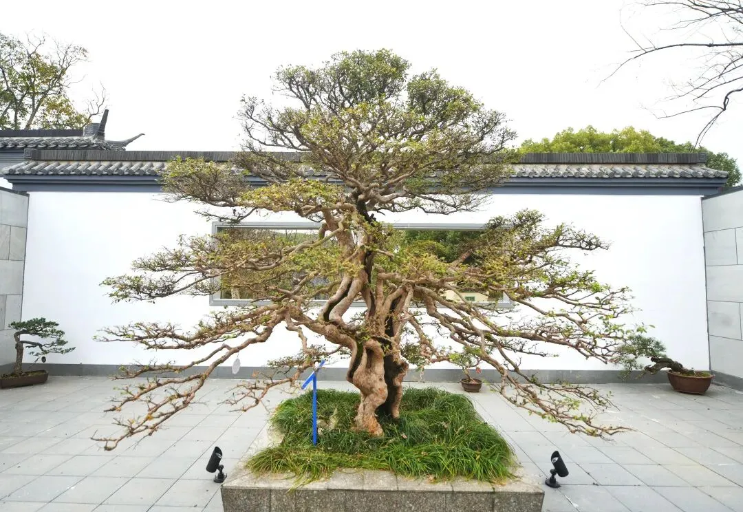 据统计,目前盆景园共有各类盆景1000余盆,20多个品种,有以五针松、黑松、大阪松、罗汉松等为代表的松柏类,还有榔榆、雀梅、三角枫等各类桩景,以及以梅花为主的观花桩景,造型各异,涵盖丛林式、直干式、卧干式、悬崖式等。