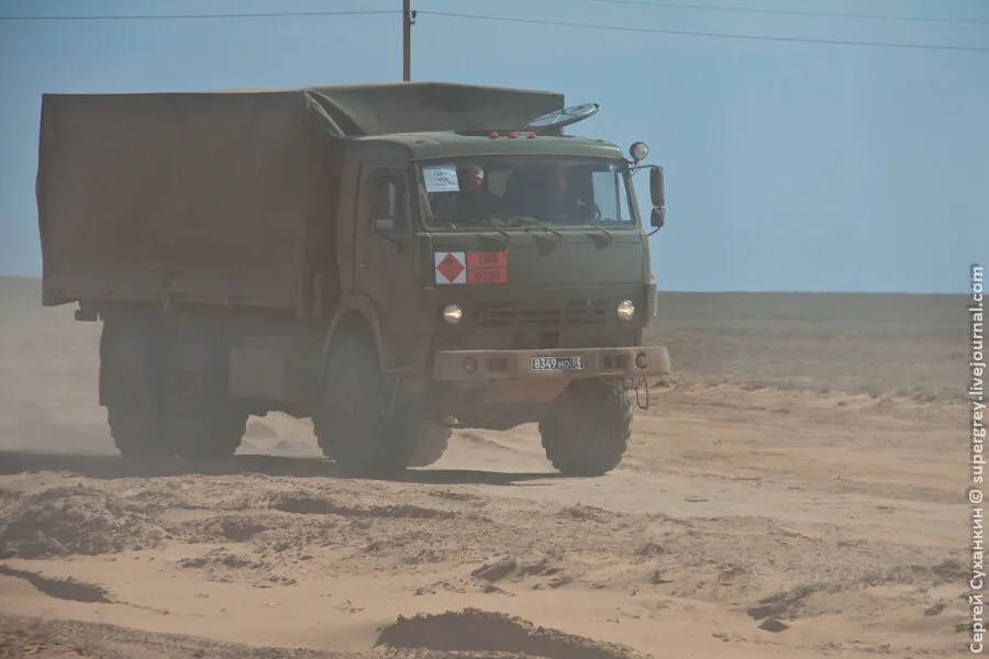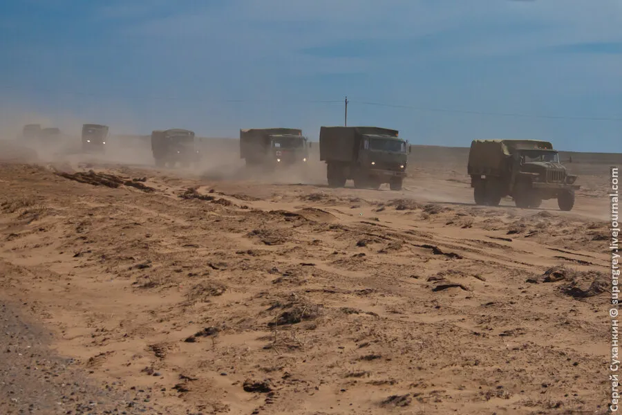 从阿舒庐克火车站到靶场的距离有60多公里,那时候,每天约有180辆“卡马兹”大型卡车运送弹药到靶场。