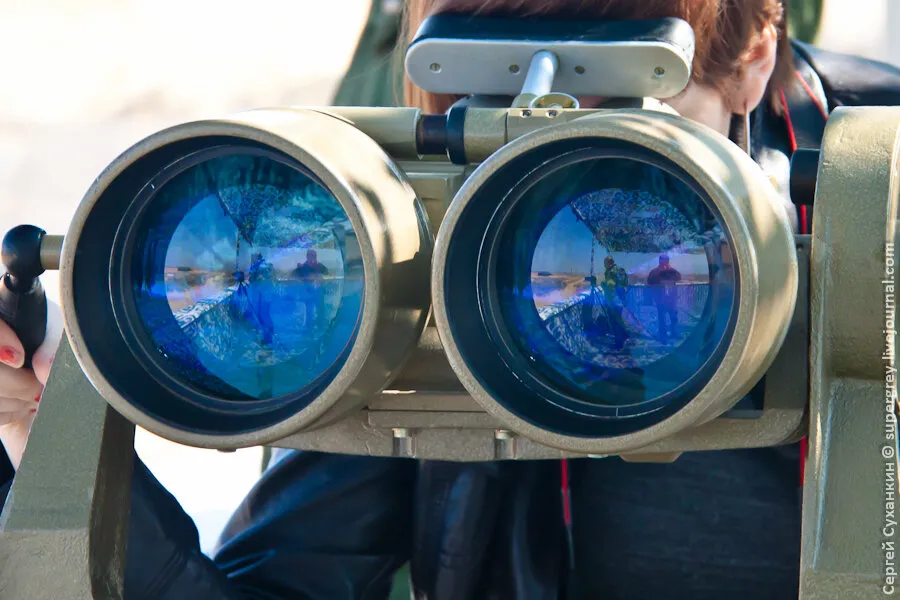 在靶场,用这种双筒望远镜对遥远目标进行观察。