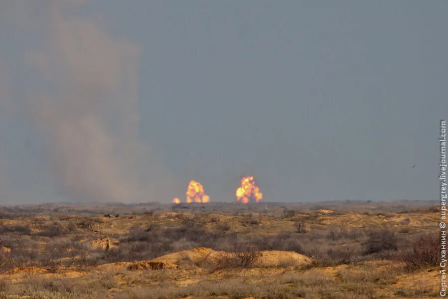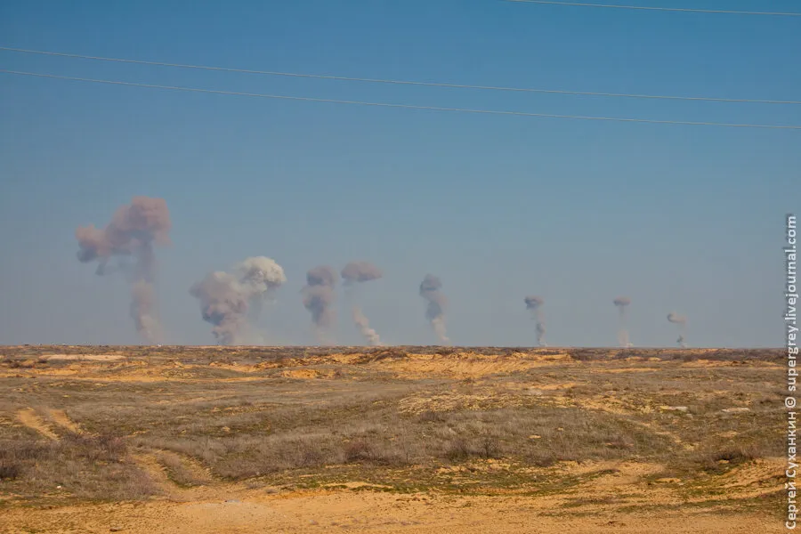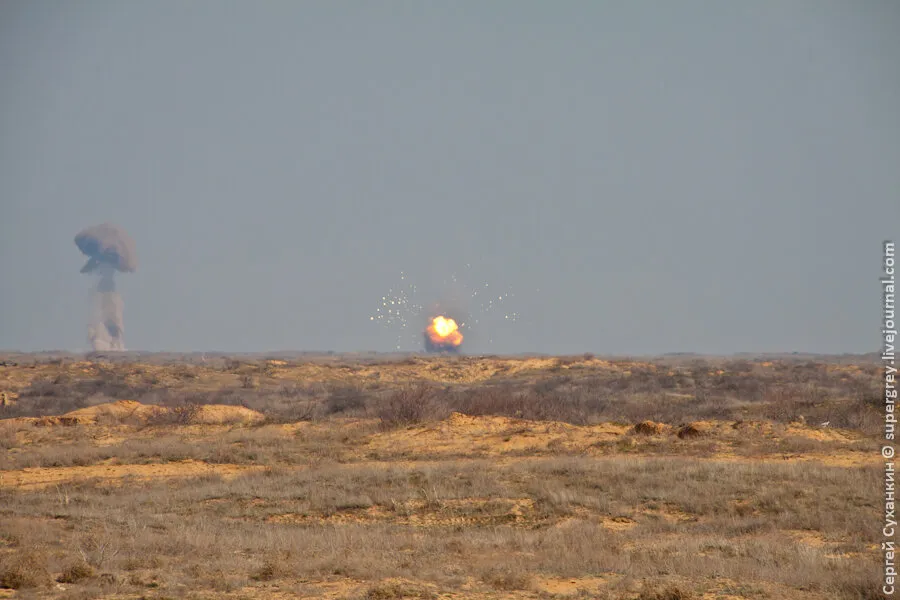 靶场上设置48个爆炸点(以前是24个爆炸点)。计划每天引爆一次,引爆时间大约在中午。引爆导弹的地方距离指挥观察哨约15公里。导弹爆炸震中的杀伤区域约2公里。每天进行48次爆炸,爆炸间隔几秒钟。点火后,导弹会随着喷火而爆炸,爆炸后产生白色“蘑菇”烟雾。