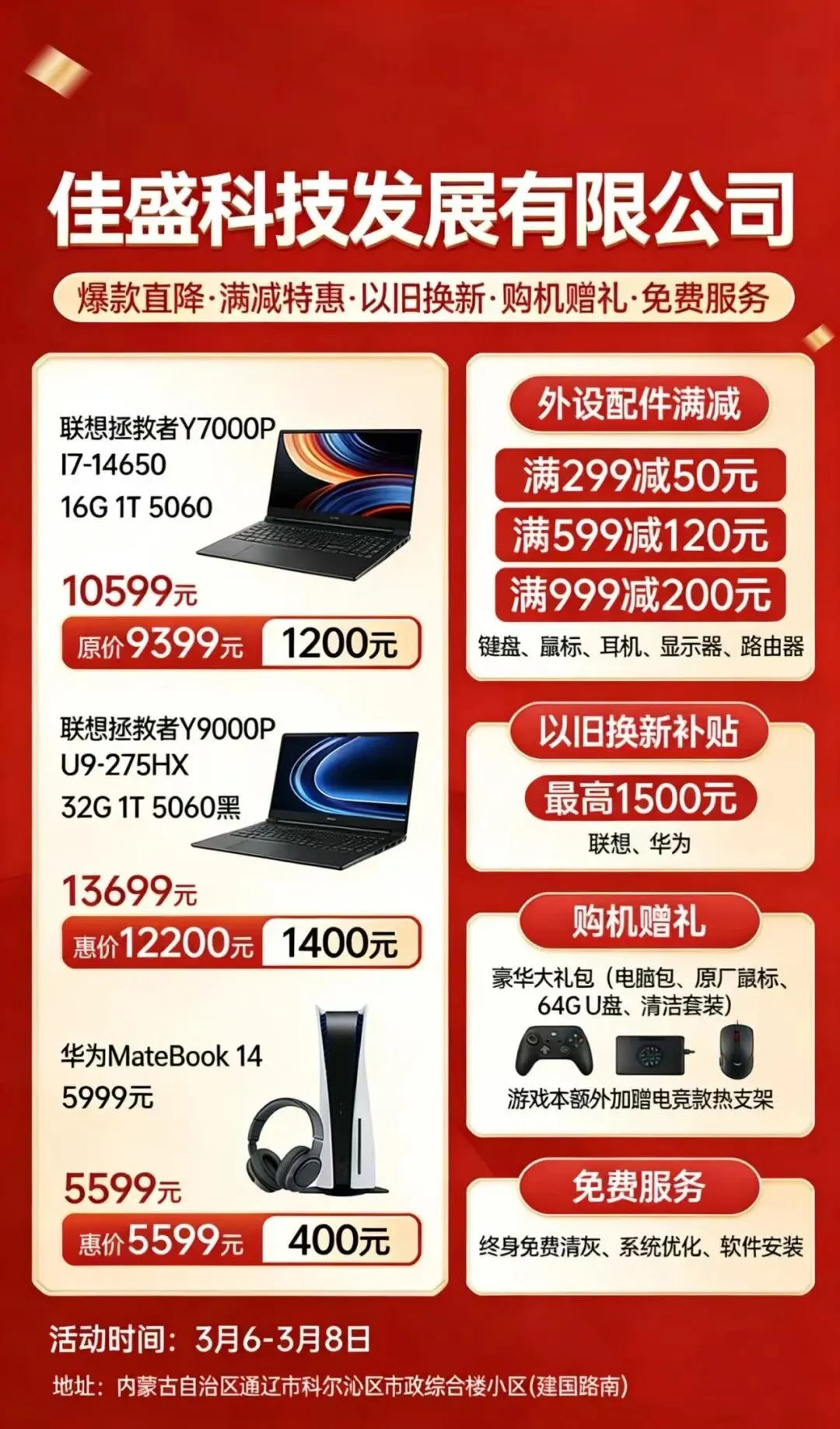 4.佳盛科技:“三八”国际劳动妇女节专属福利上线,多重优惠等你来!爆款直降、满减特惠,实实在在省 money;购机赠好礼,福利拿到手软;更有免费服务加持,贴心守护每一位女性的消费体验,解锁数码好物新方式。