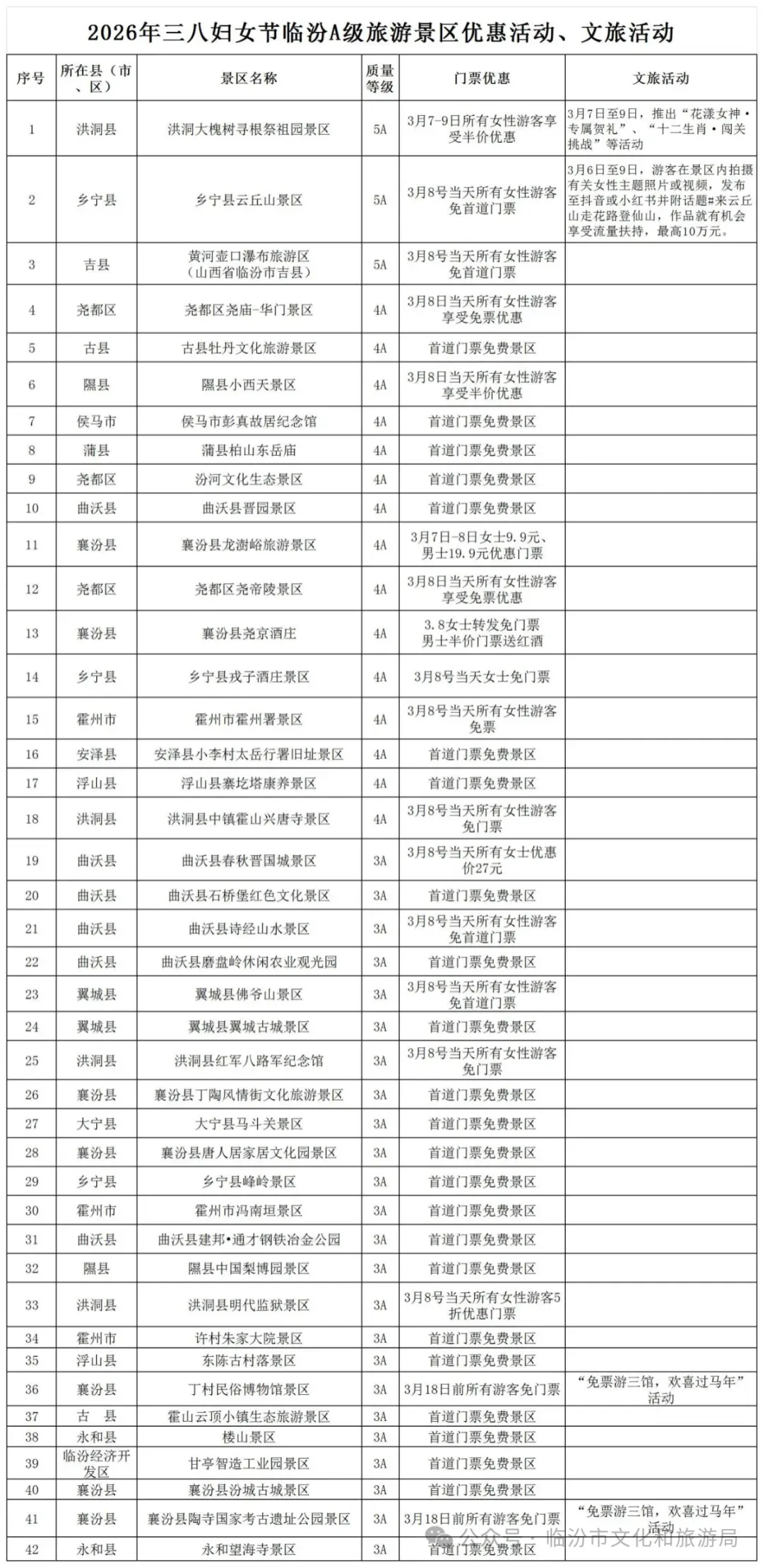 亲爱的女神,在这个美好日子里,临汾多家A级景区送上暖心福利,以山水为礼、以风光作伴,致敬每一位了不起的你。愿你眼里有光、心中有爱,步履从容、岁岁芬芳,妇女节快乐!
