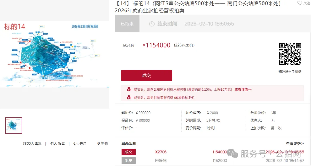 2026年2月10日,公拍网平台成功举办“赛里木湖景区2026年度商业旅拍经营权拍卖项目”。本次拍卖会共涉及14个景区核心区段的旅拍经营权标的,总出价次数达2305次,总围观人次超过7.3万,所有标的均顺利成交,最高溢价率高达768%,充分展现了优质文旅资源的巨大市场吸引力与网络拍卖的价值发现能力。