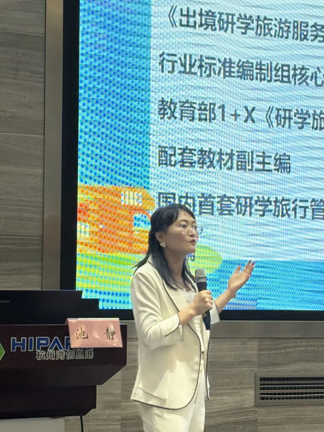 浙江旅游职业学院研学旅行管理与服务专业副教授池静,以“景区研学从门票经济到课程经济”为题分享转型方案。她指出课程经济核心是提供教育体验与成长解决方案,具客单价高、黏性强等优势。爆款产品可按“教育目标+故事情境+实践体验+成果输出”公式设计,遵循四大核心原则。盈利模式包括B2B、B2C、增值服务及IP输出四种。她还强调需加强导师团队建设、完善安全预案与课程迭代机制,保障模式可持续落地。