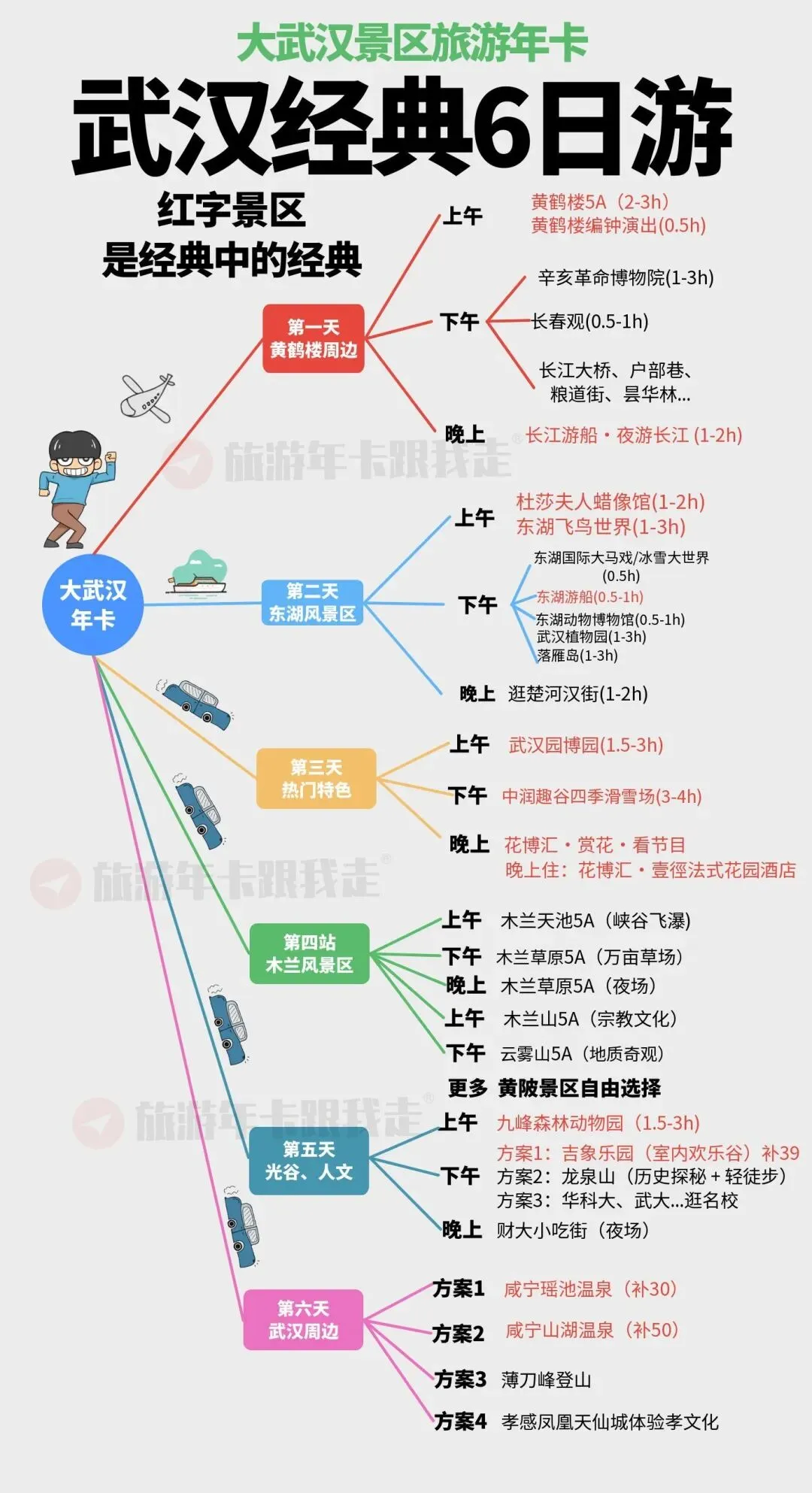 今天给大家整理一个用“大武汉景区旅游年卡”在武汉2-6日游的游玩攻略。