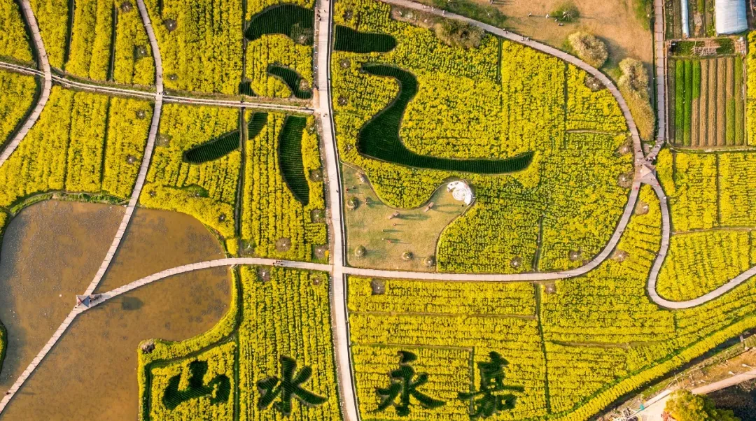 春日的乌岩山公园,处处洋溢着生机与活力。连片的油菜花竞相绽放,金黄一片、错落有致,与园内的木栈桥、澄澈池塘相映成趣,勾勒出一幅灵动秀美的春日田园画卷。