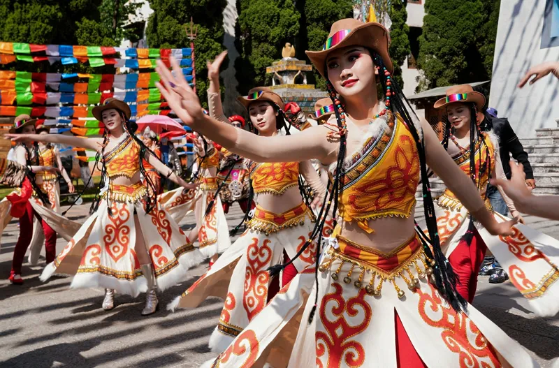 3月8日当天,景区精心策划了多个民族打跳互动点位,邀请游客朋友们踏歌起舞、共度佳节——从“舞韵同心场”的藏族弦子锅庄到“非遗薪火台”的彝族左脚舞,带你一起“不会打歌学打歌”;从普米族搓蹉舞的欢乐碰碰碰到傣族紧那罗的妙音神鸟,共同迎祥纳福、好运连连……