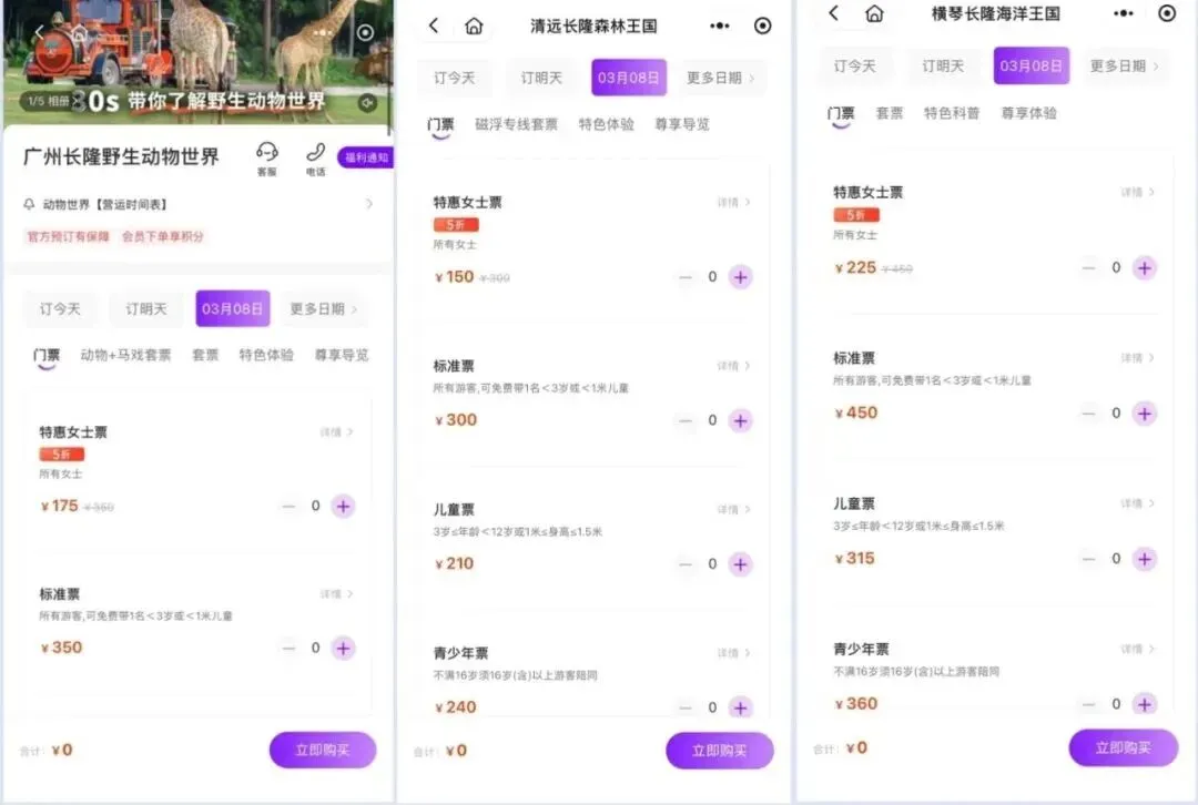 近日,有网友在社交平台称,长隆针对妇女节推出女士门票5折优惠。随后,工作人员回应:全国多地长隆景区历年均会推出女性专属优惠,但每年具体政策不同,建议游客购票前提前查询相关规则。目前多地长隆景区(广州、横琴、清远)及大马戏等项目,3月8日女士优惠票均可在小程序正常预订。最低可享5折优惠。
