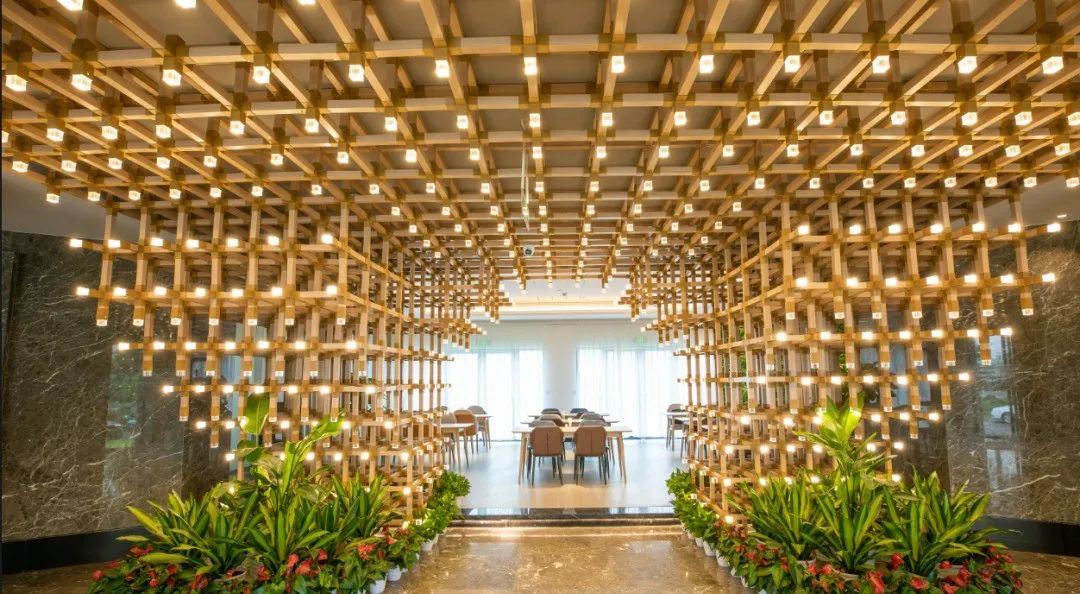 酒店大堂中心艺术镂空雕塑:作品设计灵感来源于中国古代积木,整体呈环形,象征柔美与圆满。四方型的抽象体态组成一个闭环,展现出轻盈、优雅的视觉效果。象征着平衡和宁静。
