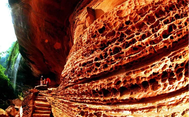 这个地方的价值在于它让你看到丹霞地貌的微观层面,不是那种远观的震撼,而是近距离接触石头的质感、纹理、色彩变化,你能清楚地看到水流侵蚀的痕迹、风化形成的孔洞、铁元素氧化后的红色层次,这种体验比看大景更能让人理解地质过程。