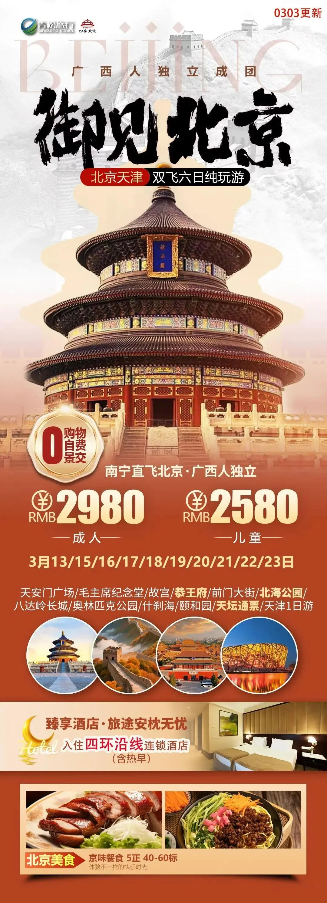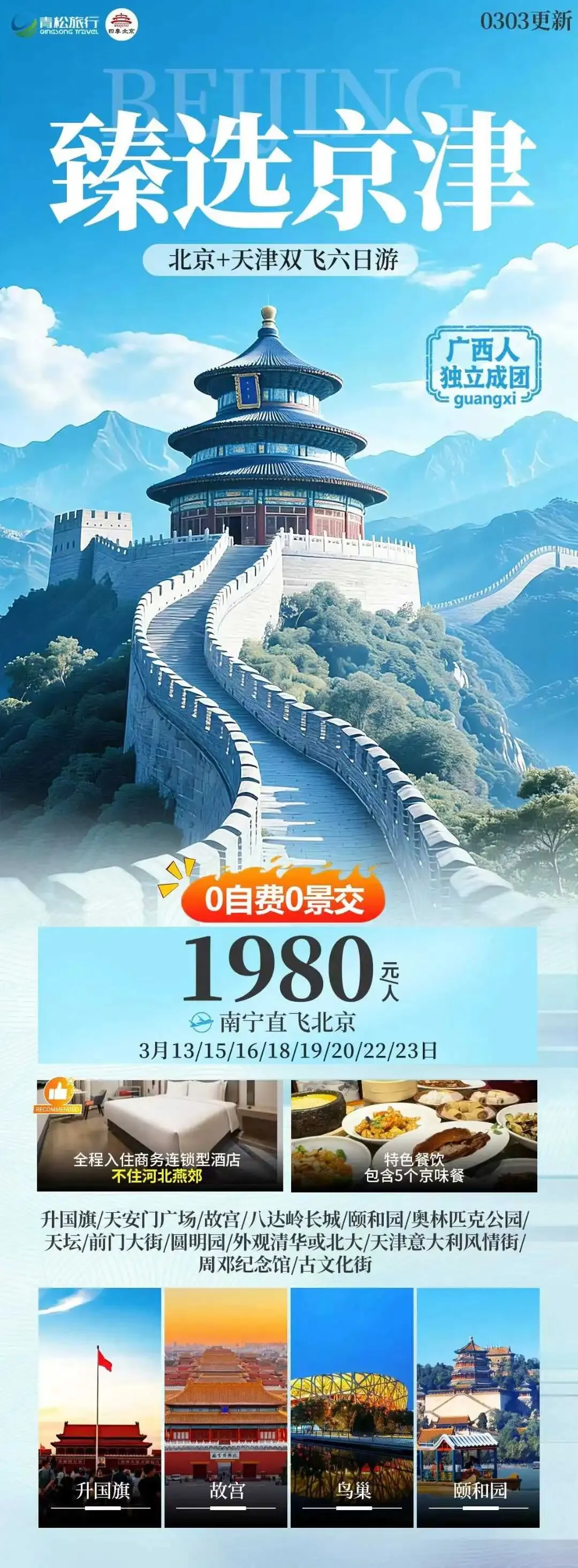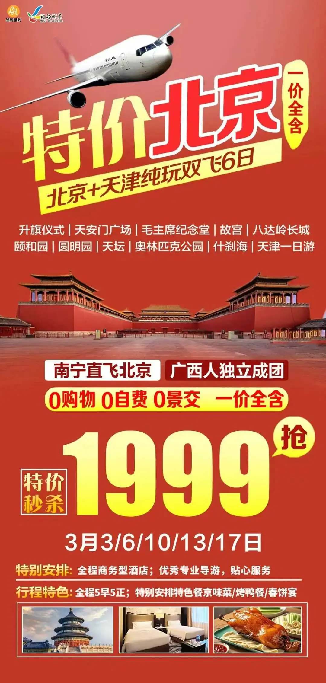 【北京】3月 北京、天津旅游线路推荐,报名优惠!