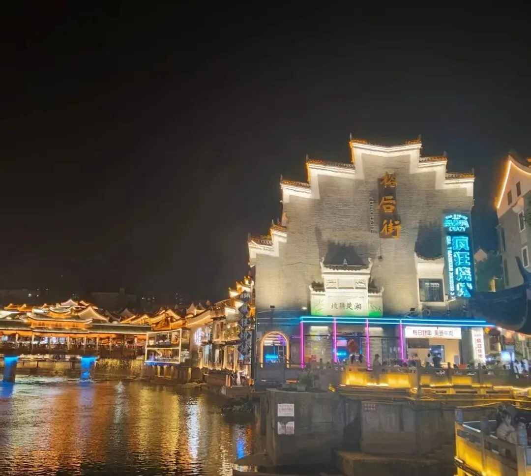 白日的裕后街,安静温婉,像一幅淡墨湘南画卷;一到夜晚,红灯笼次第亮起,灯火映在江面,古街瞬间换上温柔盛装。美食香气漫过街巷,鱼粉的鲜、小吃的香,伴着游人的笑语,把人间烟火气拉满。
