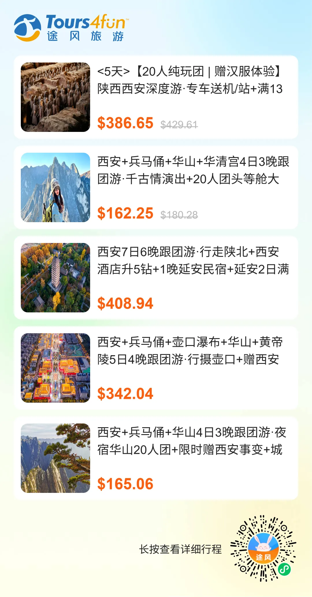心动不如行动,长按下方海报小程序,即可解锁超值的西安行程