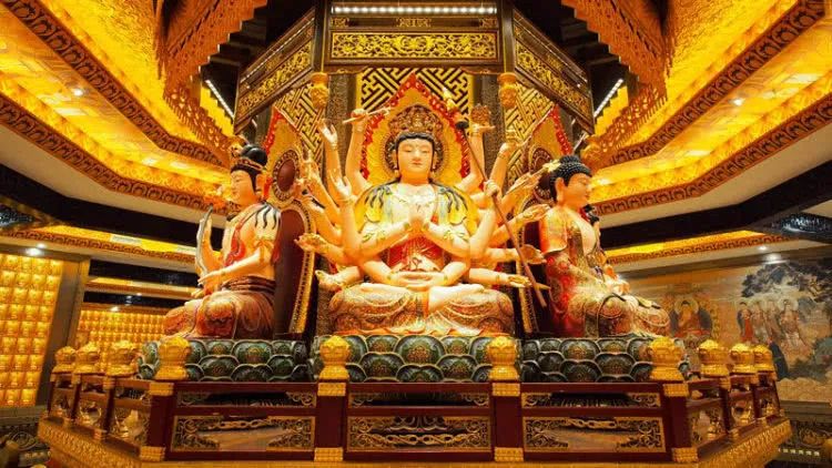 气势恢宏的万佛殿,有着精美绝伦的殿内陈设。将传统工艺与现代艺术相结合,运用雕塑、雕刻、铸造、锻造、镂空、镶嵌等20多种工艺。金碧辉煌,蔚为壮观,非常值得一看。