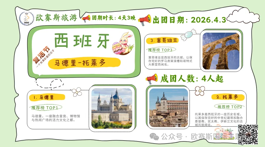 欧赛斯旅游 | 2026年复活节&西班牙 布达佩斯出发:马德里 · 托莱多 · 阿维拉 · 塞哥维亚 4日深度文化之旅