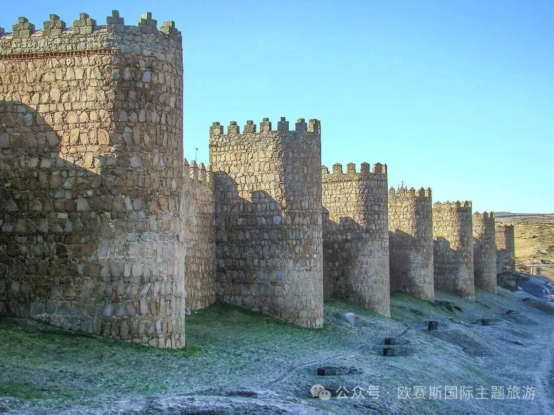 ★ 阿维拉——石墙之城,远眺保存完好的阿维拉古城墙,全长约2.5公里,拥有88座塔楼,是欧洲最完整的中世纪城墙之一。厚重石墙在阳光下呈现温暖色泽,仿佛将我们带回骑士时代。