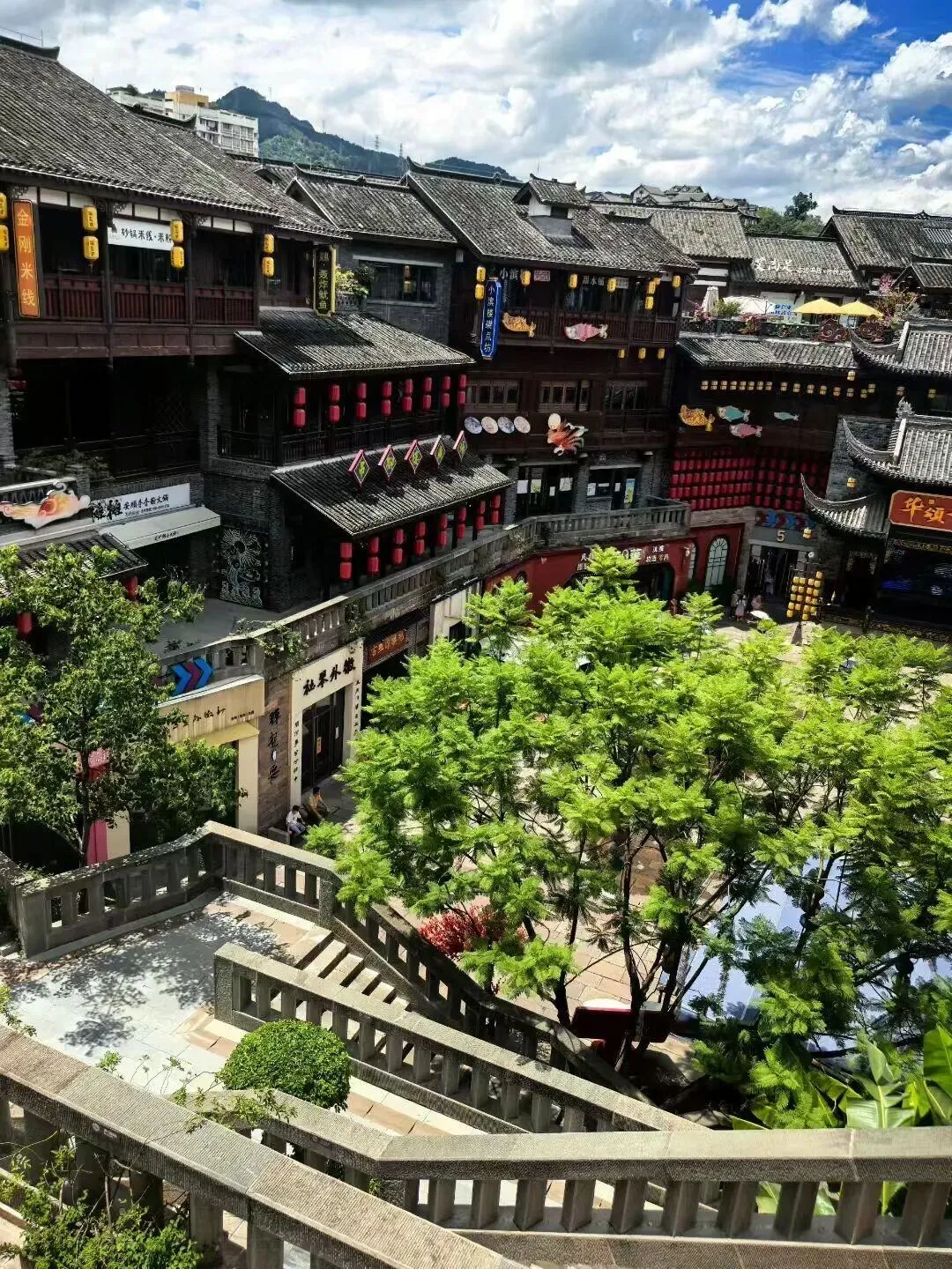 青石板路两旁是吊脚楼和茶馆,空气中弥漫着火锅底料的香气。位于沙坪坝区,核心区域约1.5平方公里,避开节假日高峰体验更佳。陈麻花和古镇鸡杂是必打卡的美食。