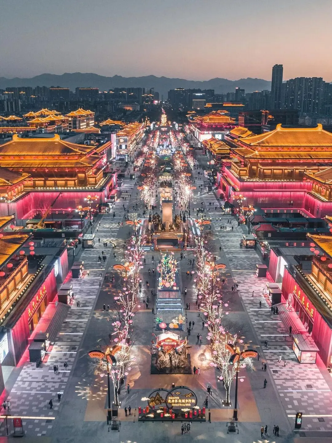 夜晚灯火璀璨,仿佛瞬间回到了盛唐长安。位于雁塔区,全长约1500米,夜晚是最佳游览时段。记得带上相机,这里的灯光秀和表演随手一拍都是大片。