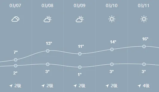 登封市气象台预报,今天,阴天转多云,东北风3级转偏南风2级,最低气温:1~2℃,最高气温:6~7℃。
