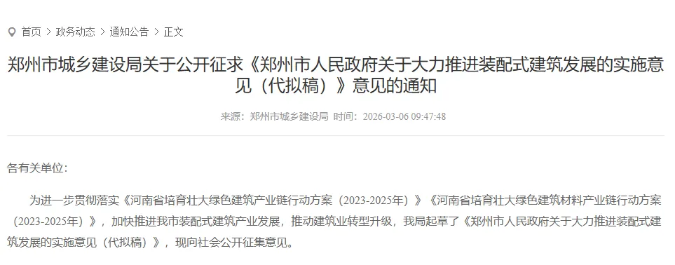 【郑州公开征求装配式建筑发展意见!使用公积金贷款额度最高上浮20%】