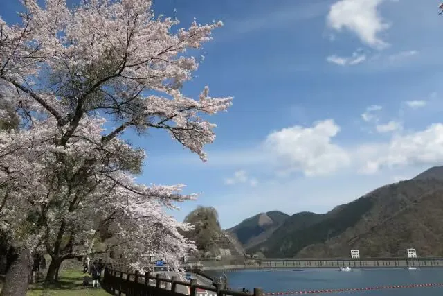 奥多摩湖是1957年完工的小河内水库,截流了多摩川上游而成的人造湖,正式名称为“小河内贮水池”,是东京都民的重要用水来源。这里全区位于秩父奥多摩甲斐国立公园内,每年约4月上旬到下旬樱花盛开,从湖边到大麦代展望台可一路欣赏染井吉野樱、大岛樱与山樱等绽开,樱花在平静的湖面上呈现倒影,交织出美丽景象。