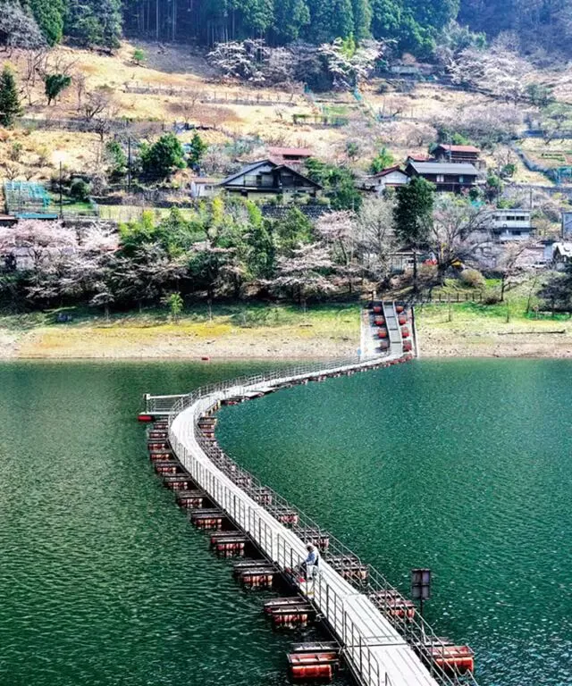 奥多摩湖也非常适合自驾,沿着湖的北岸,开车兜风从车窗延揽风光,缓缓地享受在山光水色中赏花的趣味。湖面上也有由四角箱状树脂制成、称为“汽油桶浮桥”的歩行者専用浮桥,在大自然的环抱之中,观赏如镜面一般映出樱花风景的湖面,享受水上散步的乐趣!