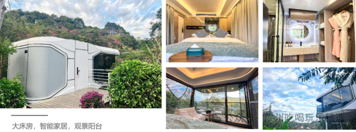 民宿系列分帐篷木屋、房车营地、鸟巢铝屋、梯田木屋、微宿太空舱等多种类型,视野开阔,环境绝佳,在安静的山谷中,配以现代化的各类设施硬件和专业化管理服务。