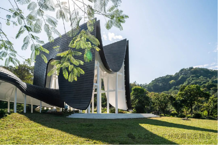 广州客天下·幸福殿堂,秉承着与自然共生的美好理念,与自然界的水、风、光与几何建筑空间融合一体,静谧而又充满神圣感,让森林婚礼回归自然,摒弃了繁琐的奢华,森林、阳光都成为你漂亮的背景。