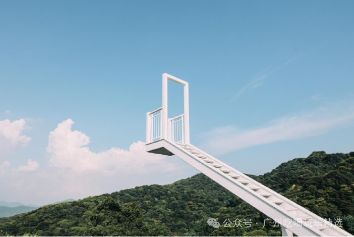 草世界里最出圈的打卡点,莫过于那条纯白天梯,经过特殊设计直通云端,梦幻浪漫。靠近云朵的地方怎么拍都好看,找个阳光灿烂的晴天,向着蓝天靠近,轻松拍出打卡点。
