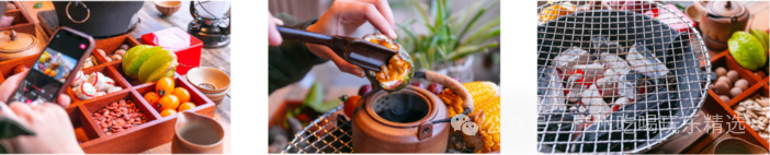 炉中生炭,盘上挤满红薯、花生、柿子等小食,闲聊之时,炭火噼里啪啦发出细微声响,耳朵巧妙捕捉了信号,探出脑袋往炉子里张望,茶汤沸腾,烟屡升腾,勾勒出人间烟火气。