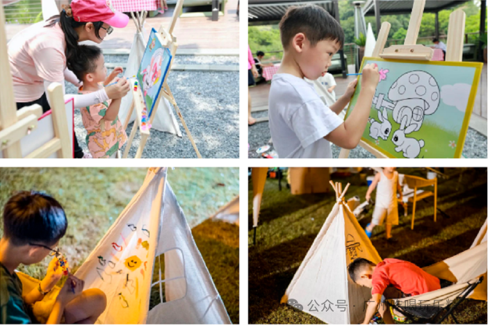 每个孩子心中都有一个奇妙世界,那里的天可能是绿的,草可能是红的,用一支支画笔,将心中那个五彩斑斓的世界,绘制在帐篷上。