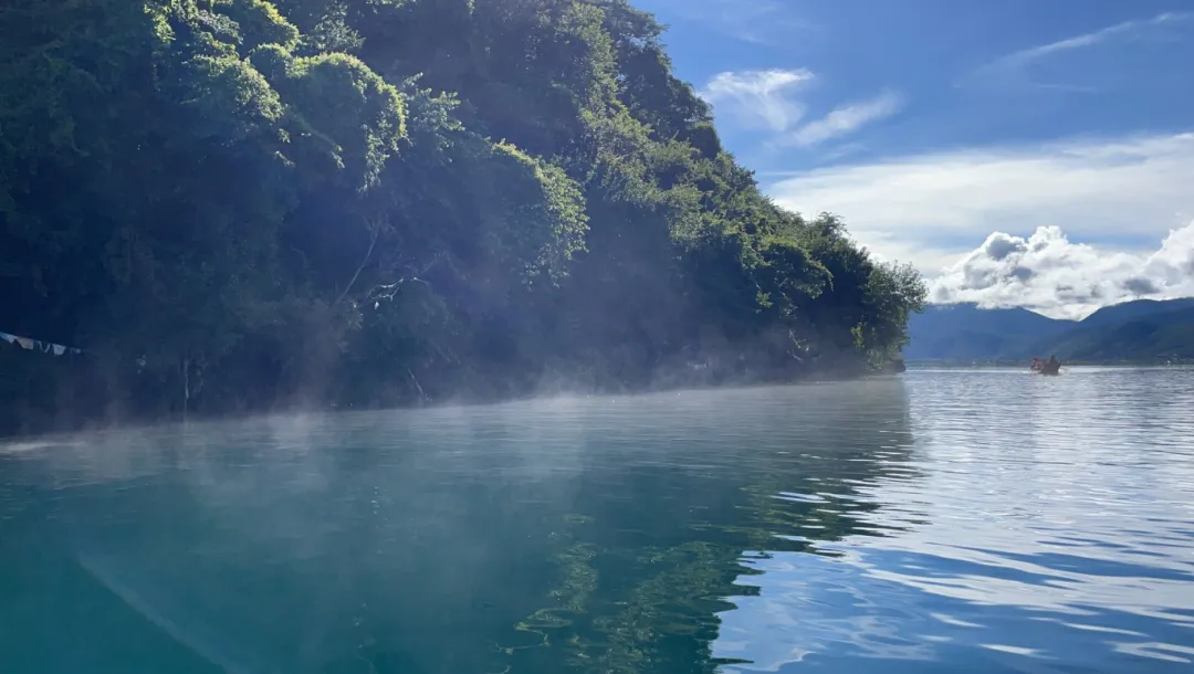 泸沽湖水面上的雾