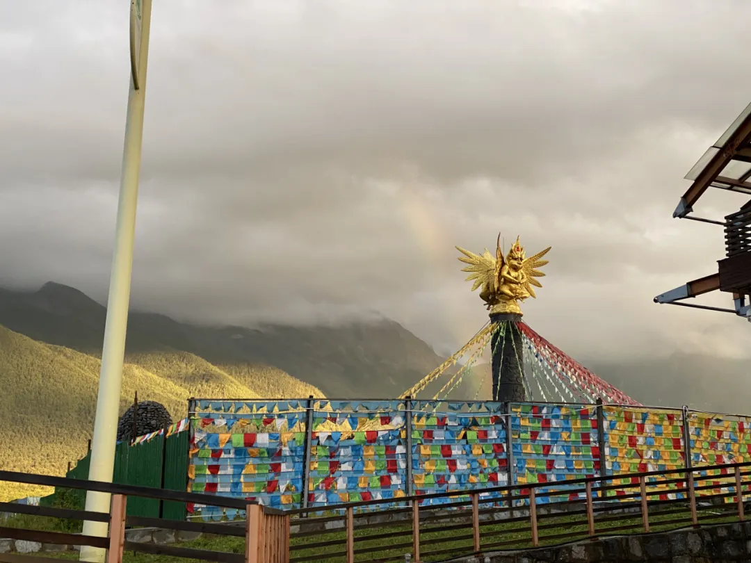 等我们到达山脚下,雨停了,太阳钻出云层,照亮一片青山,还出现了一条淡淡的彩虹,我知道,菩萨一定跟着我们,玉龙雪山一定不会下雨。夫人说,佛祖、观音菩萨、文殊菩萨、普贤菩萨、韦陀菩萨、地藏王菩萨、王子、小红都来了。她说,因为我们精进修行,佛菩萨保佑我们阖家平安,心想事成,所求如愿。