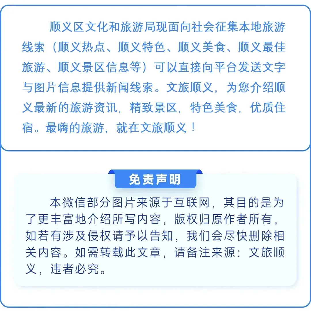 来源:顺义文旅集团 67家!顺义区首批文化艺术类校外培训机构复核获准名单公布,快来看看有哪些? 科技穿千年,顺义古迹“活”起来! 推荐丨周末慢游,解锁藏在顺义的松弛感 气温骤降不用怕,顺义温泉“热buff”,暖透初冬每一刻
