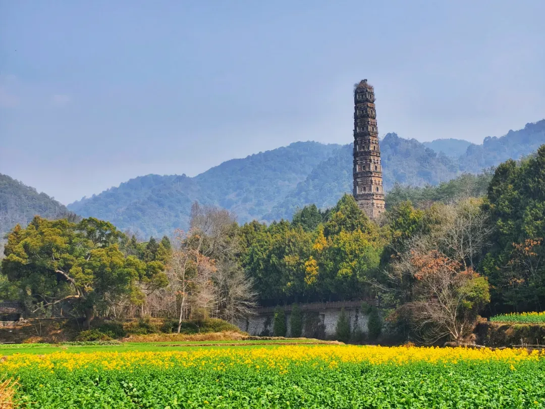 游客们或沿田埂漫步赏景,或在观景台定格美景,摄影爱好者架起三脚架,捕捉隋塔与花海的和谐画面。来自杭州的游客李女士被油菜花田深深吸引,她感慨道:“我们是来国清寺游玩的,正好邂逅了这片美丽的油菜花田,这趟来天台的旅程真的是太棒了。”