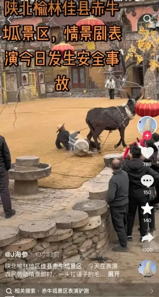 陕西佳县赤牛坬景区: 毛驴受惊冲台:景区动物表演的安全警钟必须敲响
