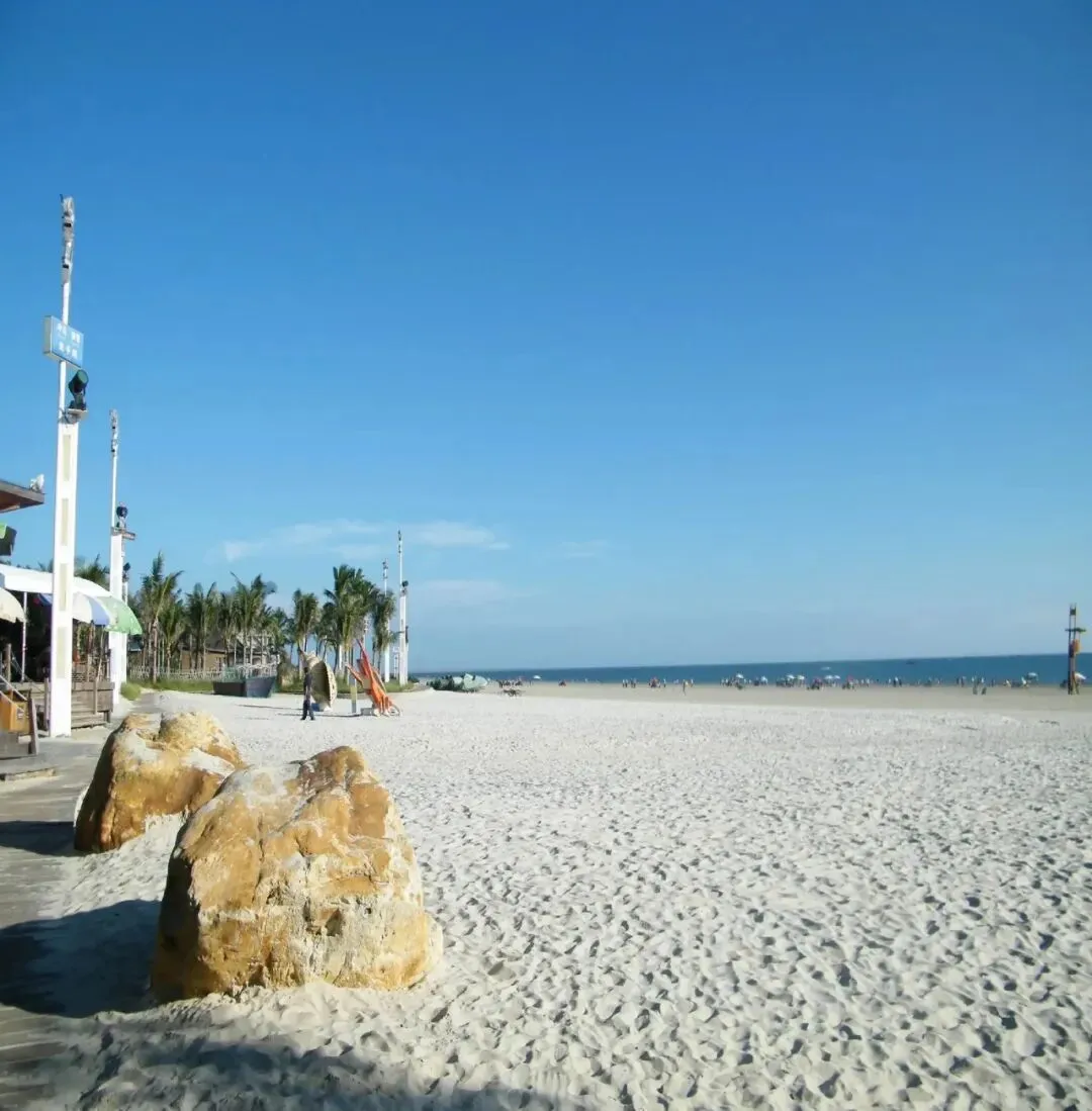 6.北海银滩海滩公园:天然优质沙滩海滩公园拥有长1.5公里、宽200米的天然海水浴场,沙质为高品位石英砂,细腻洁白,阳光下泛银光,触感柔软如棉。因“滩长平、沙细白、水温净、浪柔软、无鲨鱼”而被誉为“天下第一滩”。