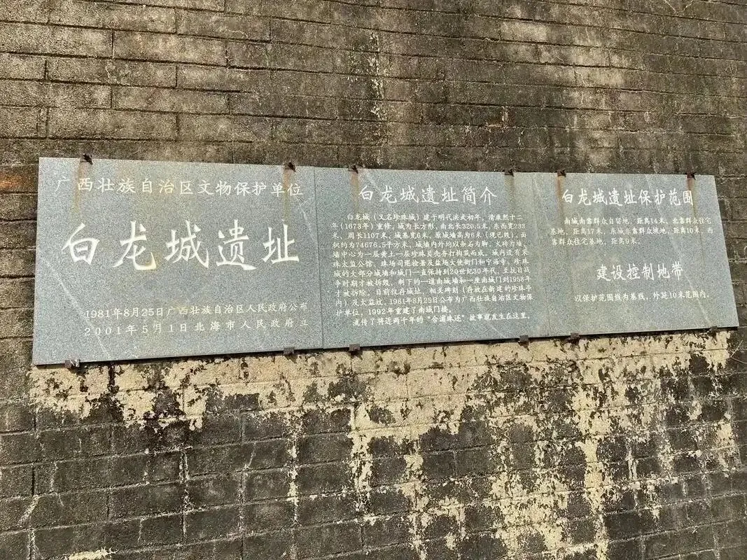 9.白龙村古镇:白龙珍珠城位于广西北海市铁山港区营盘镇白龙村,距北海市区约60公里。该城始建于明洪武初年,初为抗倭防御千户所城堡,后增设采珠太监公馆等机构,1983年被列为广西壮族自治区文物保护单位。遗址因传说白龙盘旋得名“白龙城”,又因盛产南珠称“珍珠城”,现存城墙呈正方形,南北长320.5米,东西宽233米,周长1107米,高6米,以条石为基、火砖砌墙、黄土夹珠贝夯筑,占地面积约七万多平方米。