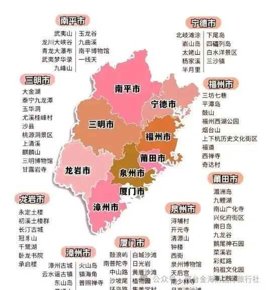 鼓浪屿,隶属厦门市,小岛,与厦门岛隔鹭江海峡。郑成功、弘一法师、鲁迅、马约翰、林语堂、林巧稚等众多名人留下身影。中西文化交汇、自然与人文交融。主要观光景点有日光岩、菽庄花园、皓月园,海底世界、毓园、环岛路、鼓浪石、天然海滨浴场等。日光岩,鼓浪屿最高峰,海拔92.7米,厦门象征,俯瞰鼓浪屿和厦门市区。菽庄花园,台湾富商林尔嘉兴建,分为藏海园和补山园两部分,“藏海”特色,融园于海,海在园中。皓月园,纪念郑成功收复台湾,园内有郑成功巨型石雕像,花岗岩精雕而成。
