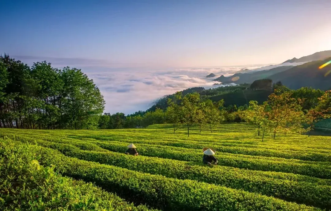 2. 罗镇茗园:作为“午子仙毫”的原产地,这里茶山连绵起伏,早樱点缀其间,云雾缭绕时宛如仙境。