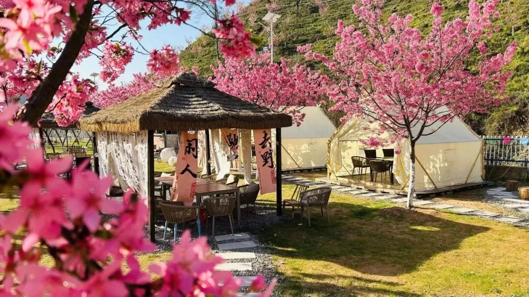 7. 沙河天赐秦韵观光园:推荐入住这里的胶囊民宿。如今这里樱花盛开,民宿依山而建,翠竹环绕,包含露天泳池和茶园,推窗即见青翠茶山 。