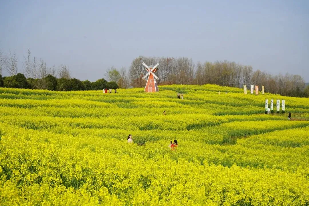 4. 堰口镇许家巷村观花点:油菜花海观花点,此处花田与现代化桥梁交汇,构成一幅独特的画卷。