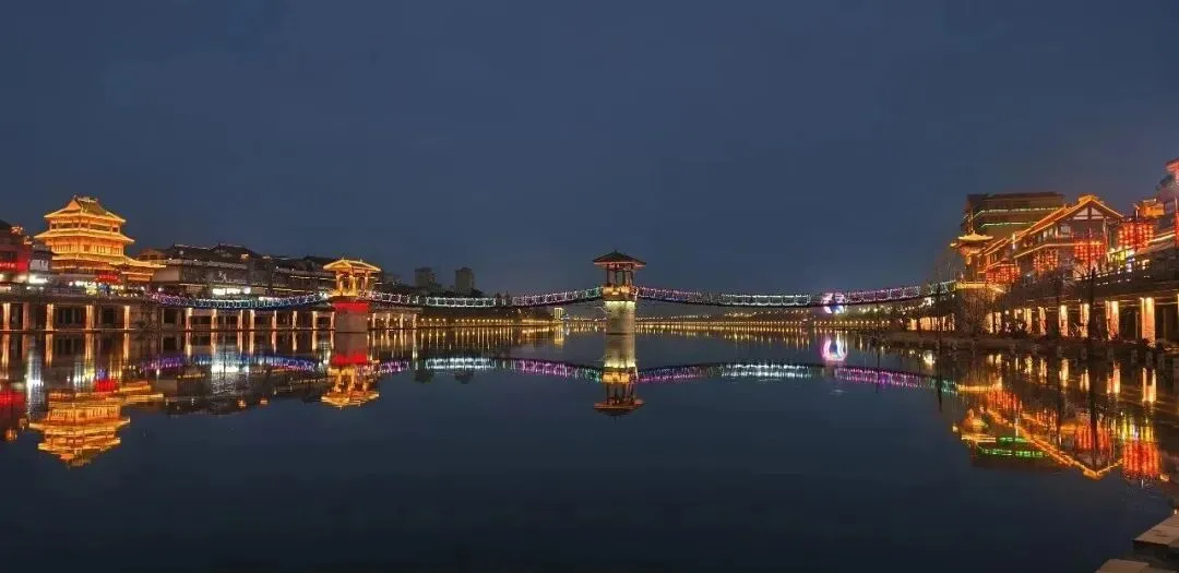 8. 汉风廊桥:行程的终点,建议晚上游览。廊桥灯火倒映牧马河,可以穿上汉服打卡,观看非遗演出,品尝夜市小吃 。