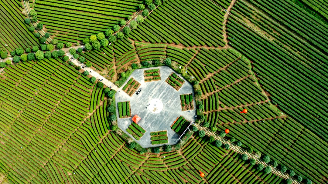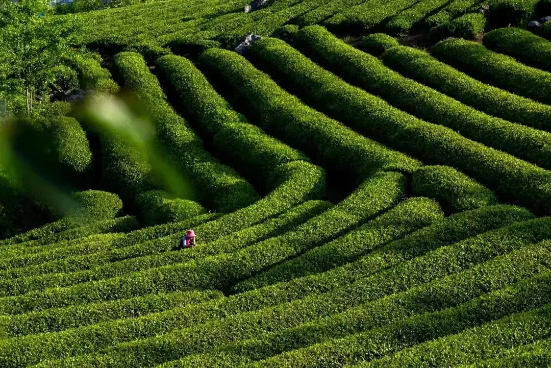 4.峡口江塝茗园:被誉为“中国最美茶园”之一。这里茶垄层层如抹茶蛋糕,修有完善的步行栈道,可深入茶海拍照 。