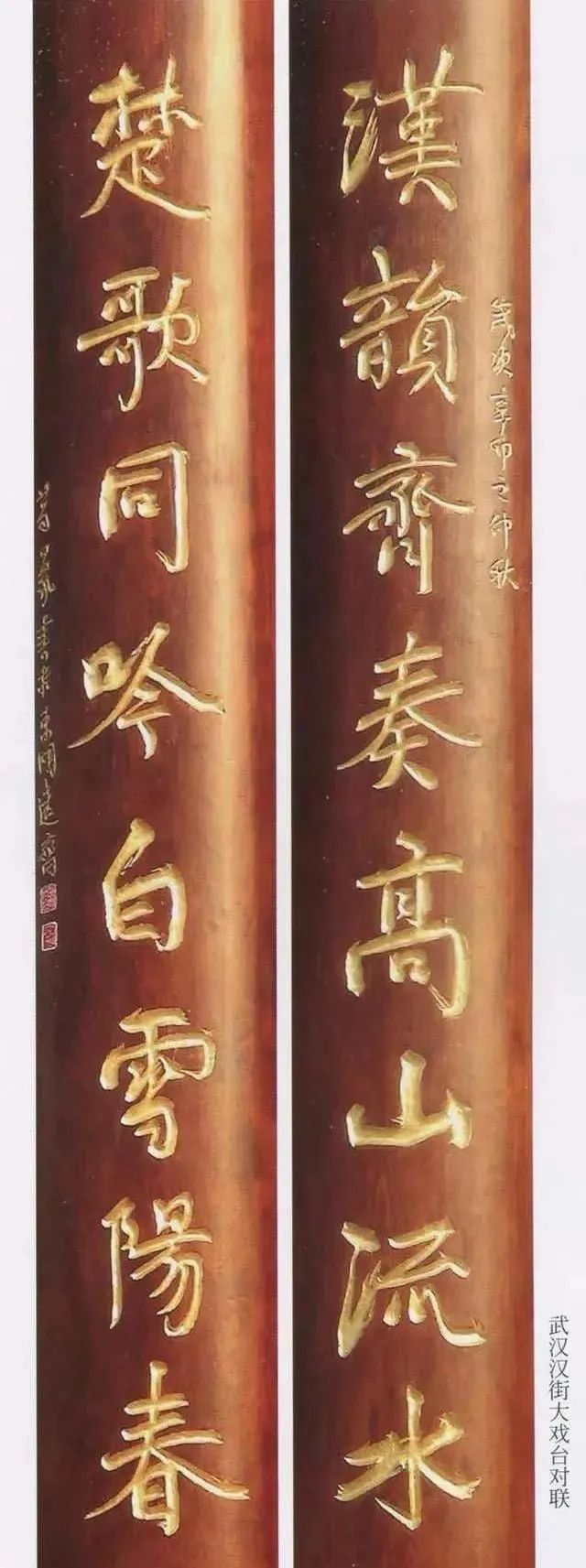 近几年,武汉作为中部的大城市,城市建设日新月异。2011年,武汉新兴商业街区——楚河汉街建成并开始运营。楚河汉街是万达集团斥资600亿打造的中国第一商业街,被誉为现代版的“清明上河图”,楚河汉街中心大戏台的两侧台柱上的对联十分醒目:“汉韵齐奏高山流水,楚歌同吟白雪阳春”。
