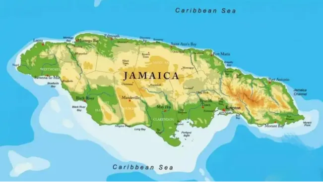 牙买加为多山国家,东部为山地,中部和西部为丘陵和石灰岩高原,地貌特征丰富,形成许多奇岩异洞、泉水四溢、溪流交错、瀑布飞泻的奇观。岛东部的蓝山山脉最高峰海拔2256米,是加勒比海地区最高的山峰之一。