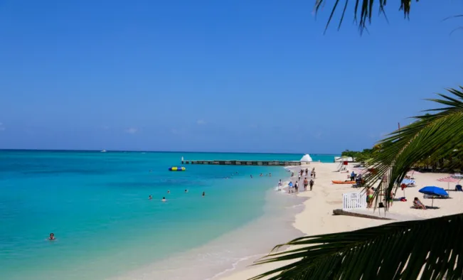 加勒比海堪称世界上最洁净的水域之一,牙买加沿岛周围富有海滨沙滩,海水清澈,海床平缓,白沙柔细。