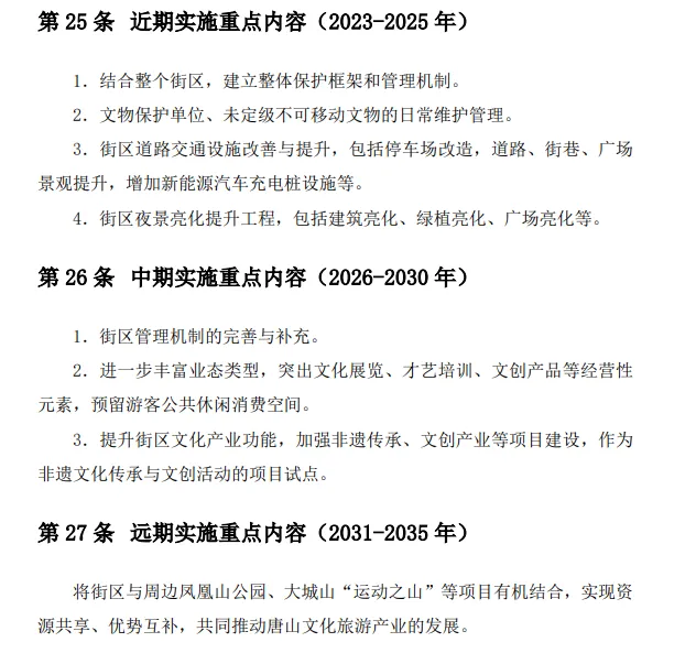 二、《开滦唐山矿保护规划》《启新水泥厂保护规划》和《培仁保护规划》是指导历史文化街区保护、发展和管理的法定依据。核心保护范围、建设控制地带内新建、改扩建及拆除类建筑项目的保护与管控,要严格按照规划执行。